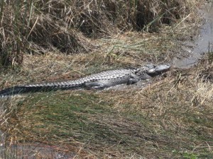 Although I have vacationed in New Orleans, one of my favourite cities, and have in fact, enjoyed a bayou cruise, I was not that familiar with alligators, so some research was necessary. While visiting my friends Janice and Larry Hatt at their West Palm Beach condo, I prevailed upon them to take me to see alligators. We went to a place in the Everglades called Shark Valley. Why it is named Shark Valley is a mystery to me since it is not a valley and there was a noticeable absence of anything resembling sharks. But there were alligators galore, and after, wandering off on a trail during a break in the tour and nearly stepping upon one – fortunately for me fast asleep – I wisely stayed in the tram for the duration of the outing.