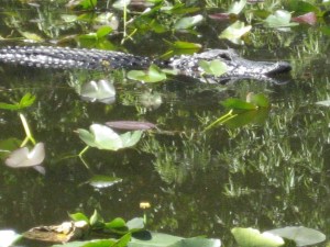 Although I have vacationed in New Orleans, one of my favourite cities, and have in fact, enjoyed a bayou cruise, I was not that familiar with alligators, so some research was necessary. While visiting my friends Janice and Larry Hatt at their West Palm Beach condo, I prevailed upon them to take me to see alligators. We went to a place in the Everglades called Shark Valley. Why it is named Shark Valley is a mystery to me since it is not a valley and there was a noticeable absence of anything resembling sharks. But there were alligators galore, and after, wandering off on a trail during a break in the tour and nearly stepping upon one – fortunately for me fast asleep – I wisely stayed in the tram for the duration of the outing.