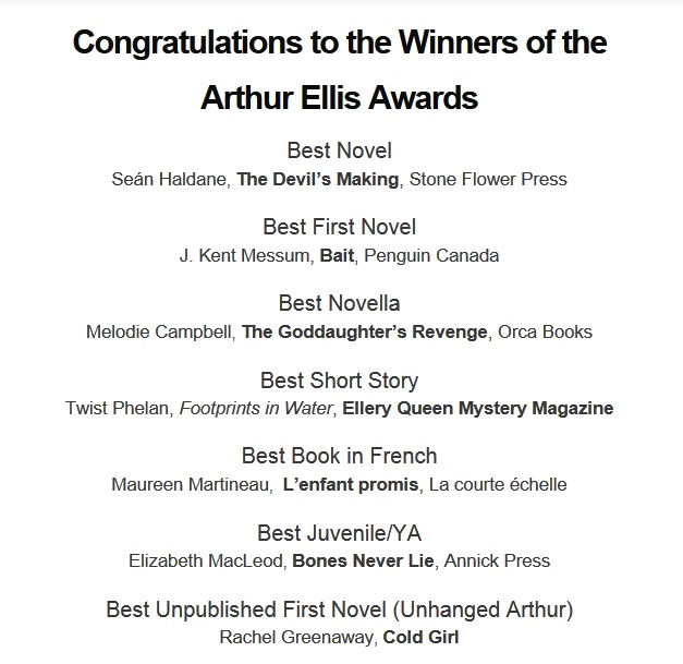 Our beloved THIRTEEN did not win the Arthur Ellis Award last night, but it certainly made a terrific showing, with TWO nominations for Best Short Story.