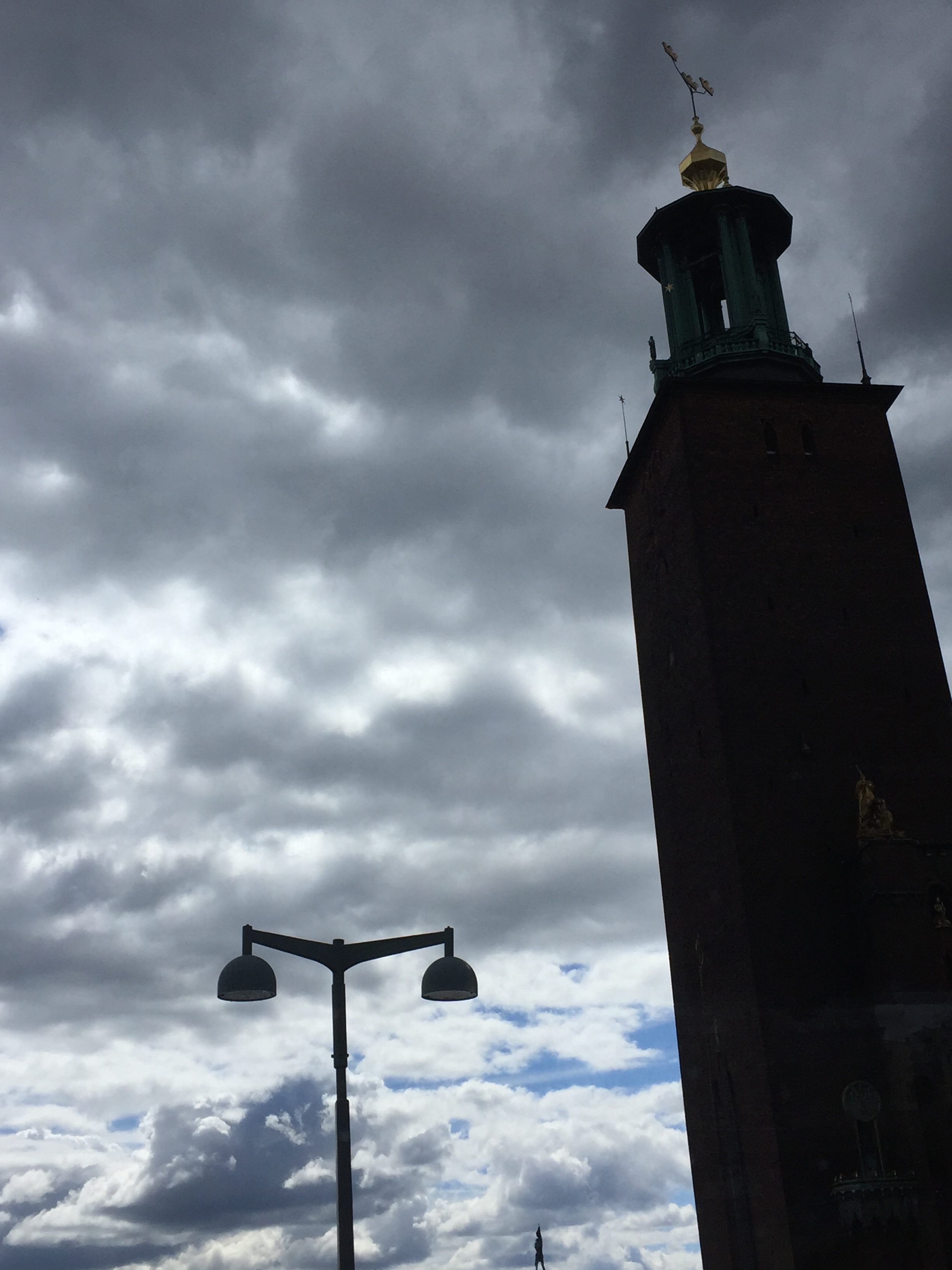 In Sweden, I look up at the clouds swirling around the clock tower crowning city hall, and I think of dark and stormy nights and the evil that lurks.