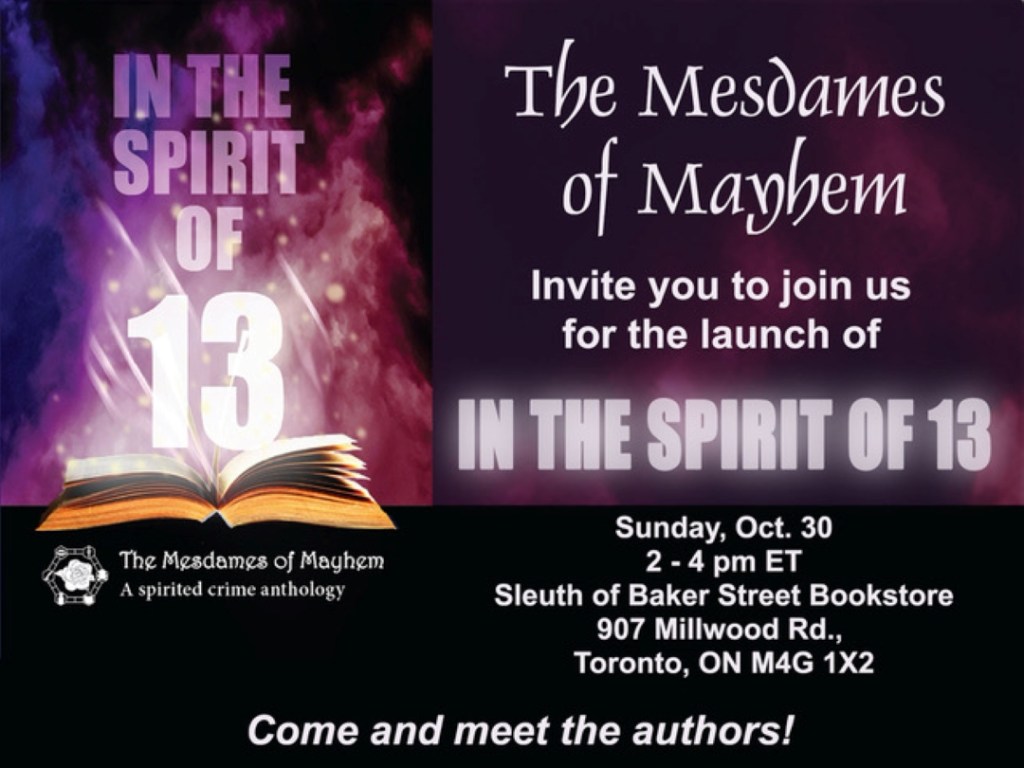 We’re excited to be back for our first real world event since the start of COVID. Especially since our new anthology, In the Spirit of 13, celebrates the 10th anniversary of The Mesdames and Messieurs of Mayhem!