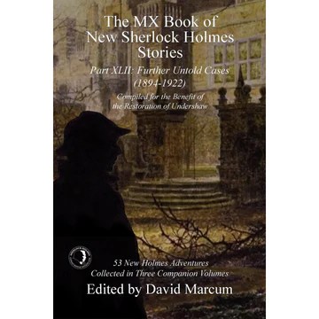 And in 039. The MX Book of New Sherlock Holmes Stories, Part 30: 2023 Annual (1897 to 1923). https://mxpublishing.com/collections/the-mx-book-of-new-sherlock-holmes-stories/products/the-mx-book-of-new-sherlock-holmes-stories-part-xxxix-2023-annual-1897-1923-paperback The MX Book of New Sherlock Holmes Stories – Part XXXIX: 2023 Ann – Sherlock Holmes Books by MX Publishing