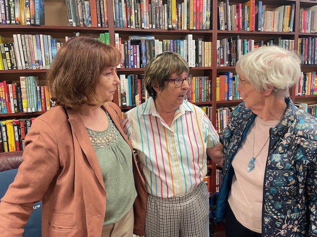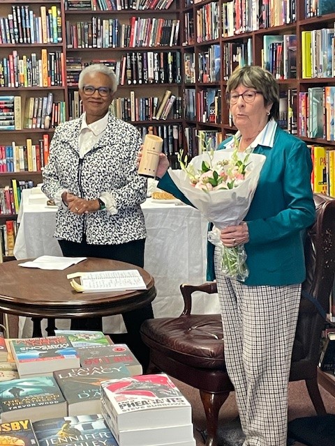 Sylvia Warsh: Maureen Jennings and flowers; Maureen Jennings with Sylvia Warsh and Lynne Murphy
