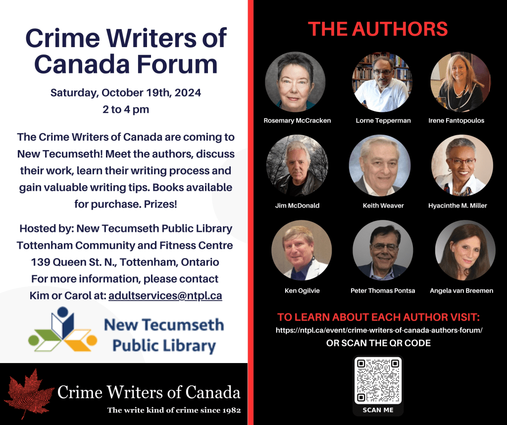 And on Saturday, October 19, 2024 she joined a panel of four CWC authors for the CWC Forum held at New Tecumseth Public Library. The program aimed to encourage emerging authors to learn from established writers.