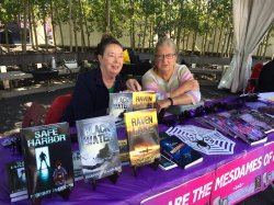 For the fourth year in a row, we staffed a booth at Harbourfront. We sold copies of our anthologies: Thirteen, 13 o’clock, and 13 Claws, helped support literacy and made new friends. The weather was perfect and Toronto book lovers turned out in throngs.